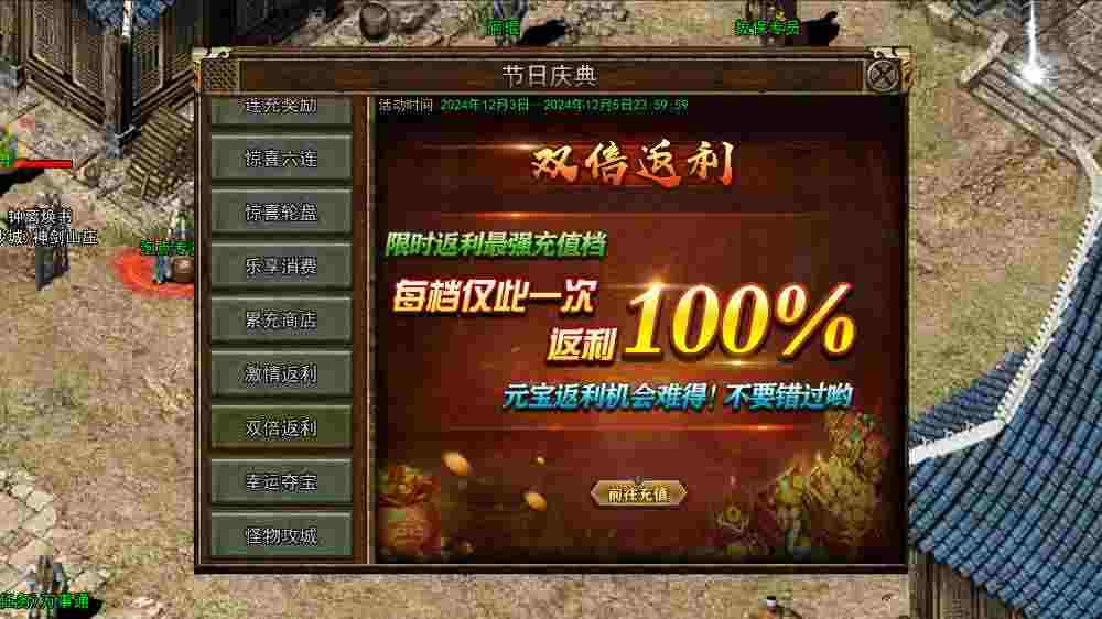 - 火龙王来袭活动,周一至周五晚8点开启,共刷新3只,每条线的勇者大陆、绿踪林、冰风谷地图各随机刷新1只,击杀火龙王掉落火龙宝箱5个,有几率开出随机宝石1颗、天界之钢1个、随机1~2属性卓越项链、随机1~2属性卓越戒指。